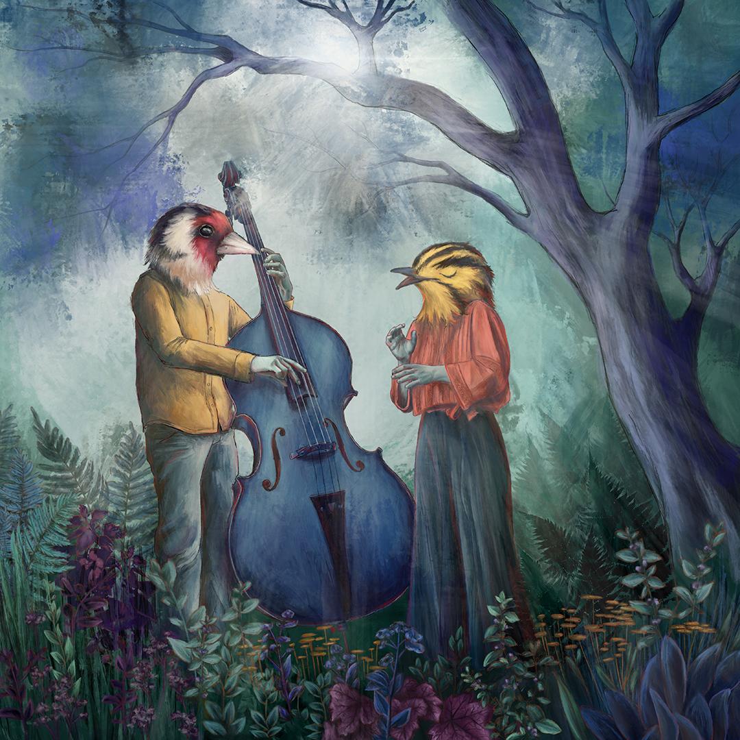 De l’oiseau de mauvais augure à la pêche miraculeuse, en passant par la métamorphose, les morceaux pour la plupart issus de la tradition orale nous plongent dans des histoires douces-amères aux allures de contes. Sous les arbres partage dans une atmosphère profonde son point de vue poétique et musical du lien tumultueux qui lie l’humain au vivant.