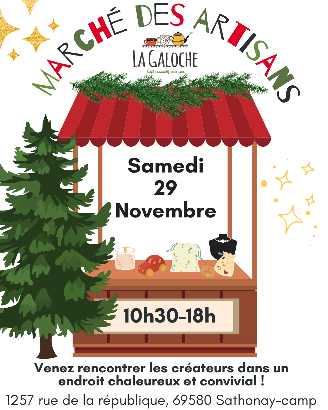 La Galoche accueille un marché des artisans, tous du coin : les Crayons de Valentine, Pacotilles et Trucs de filles, Aurélia Bigard (Designer), ASMEA, BADABOIS, les Bougies de Monts d'Or, Benjamin Trouille(Ecrivain), Bijoux Touareg.